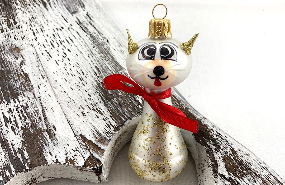 Sklenená figúrka v podobe mačičky.