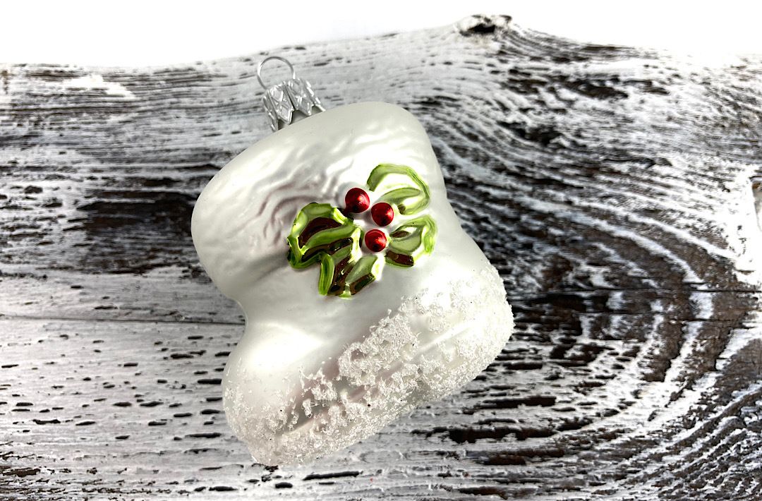 Sklenená čižmička v bielej farbe ladená do kolekcie Traditional Christmas.