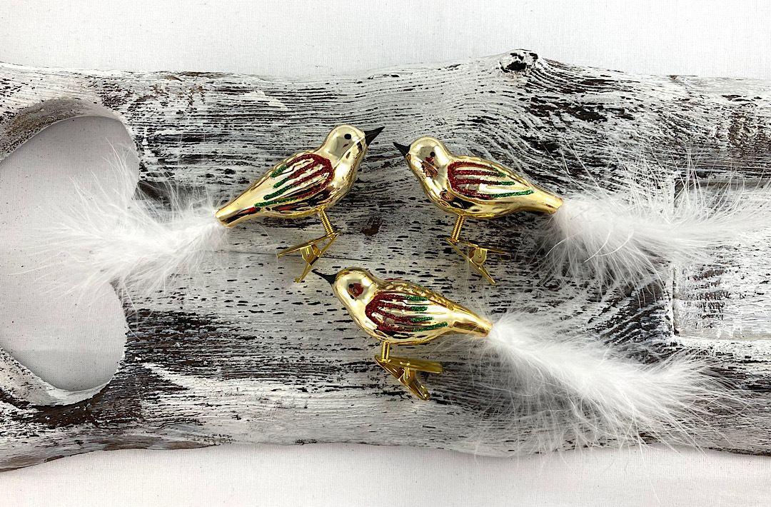 Sklenené vtáčiky s bohatým perím na chvoste.