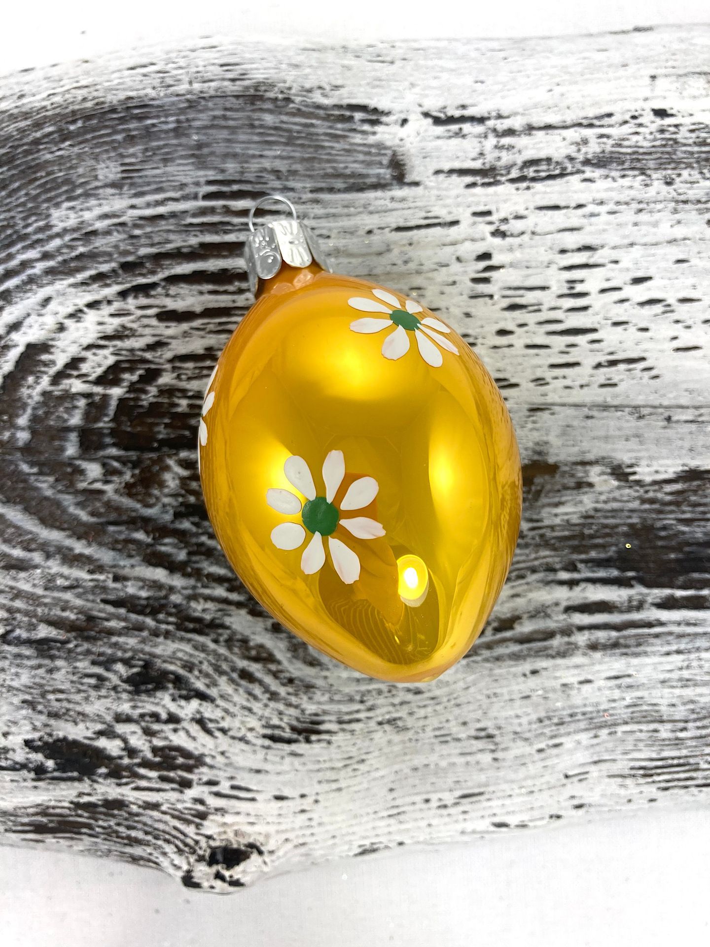 Sklenené vajíčko 969/2171/1ks – 266 žlté, kvietky