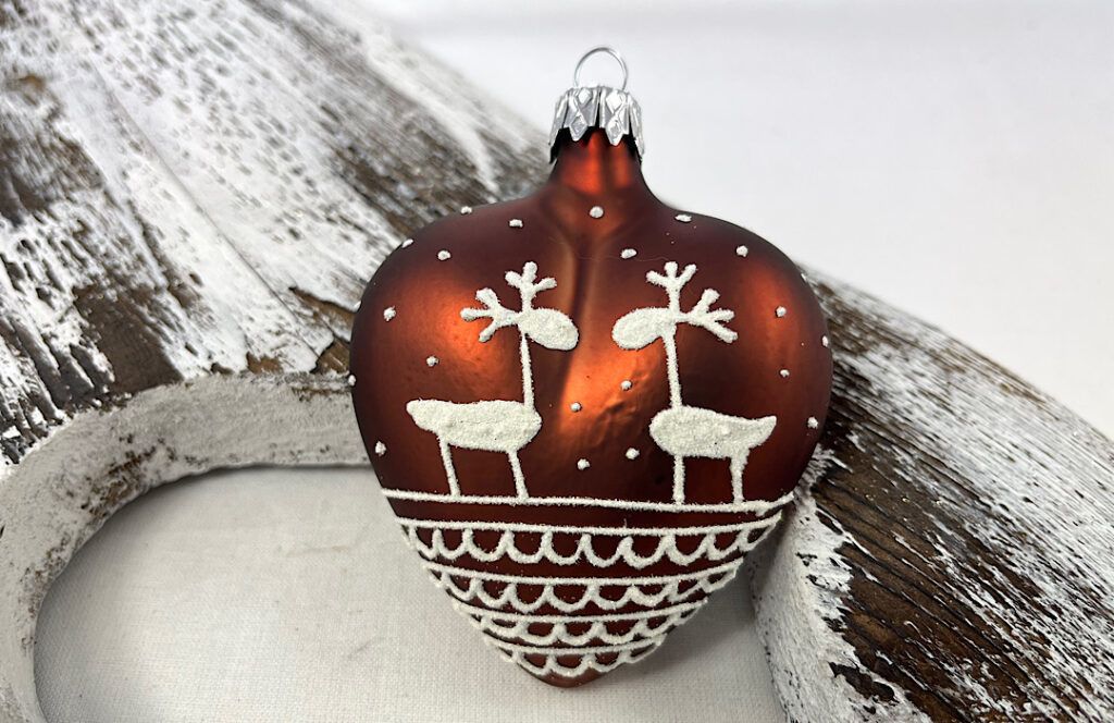 Sklenené srdiečko v hnedej matnej farbe s dvoma sobmi.