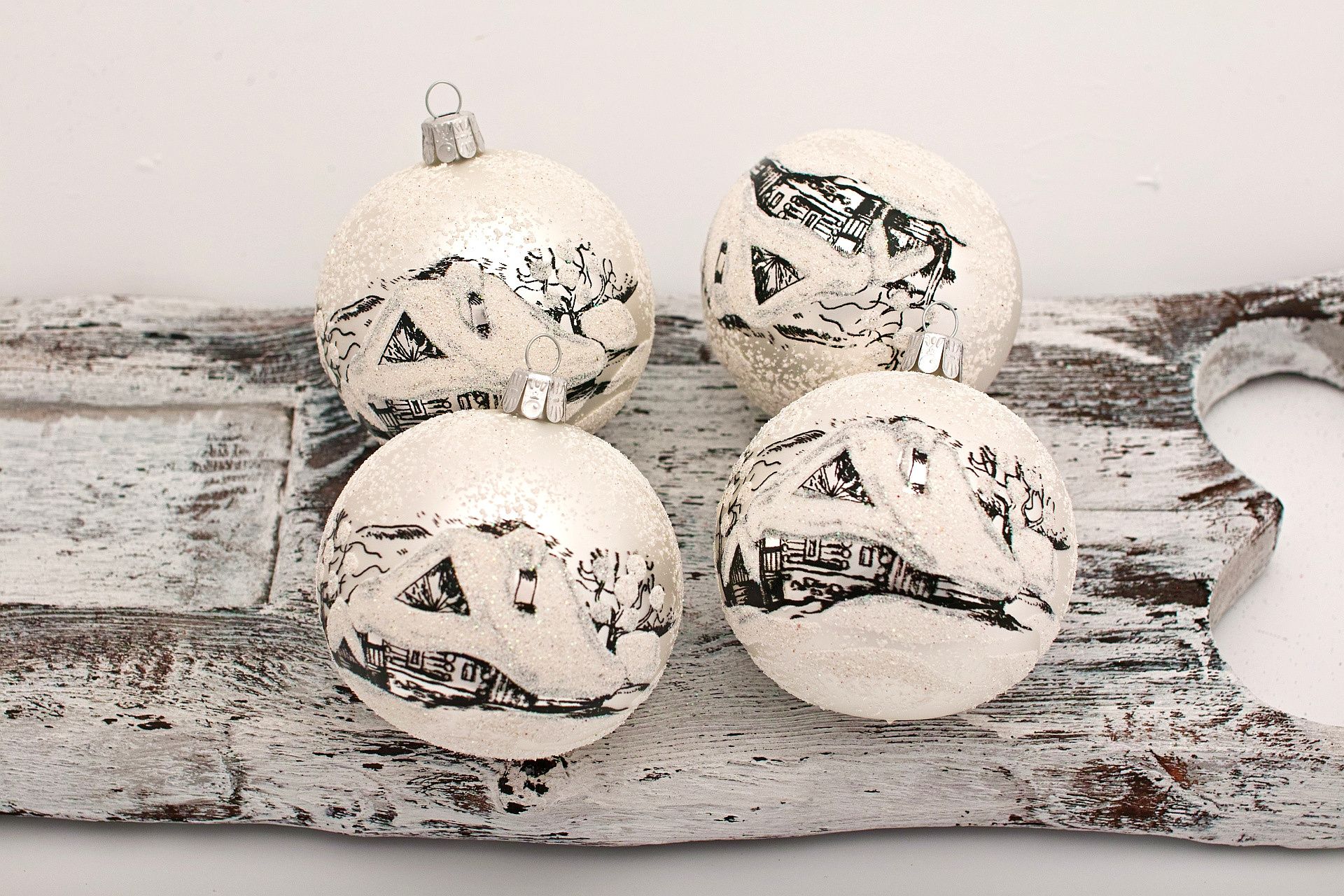 Vianočné gule 24/5844/8/4ks – chalúpky biele 104 – príroda
