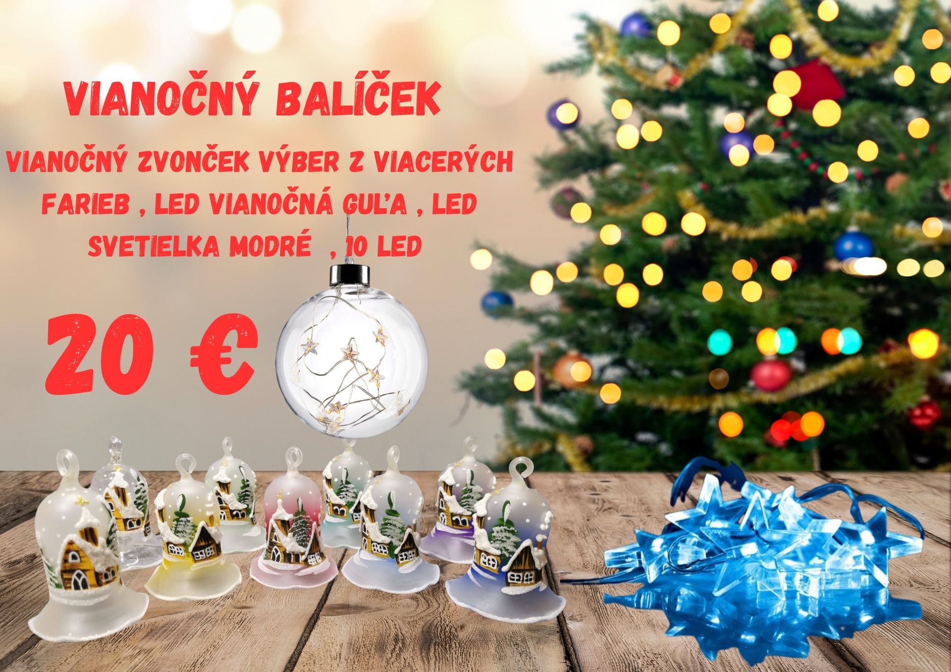 Vianočný balíček , Vianočný zvonček výber z viacerých farieb ,LED vianočná guľa , LED svetielka modré - na objednávku , balíme do celofánu alebo do darčekovej krabičky .