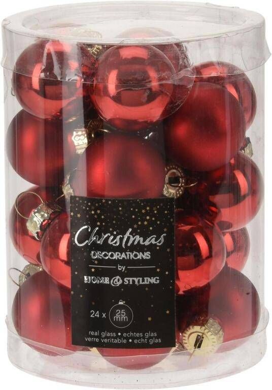 Červená vianočná guľa, sklenená, 2,5 cm, sada 24 ks