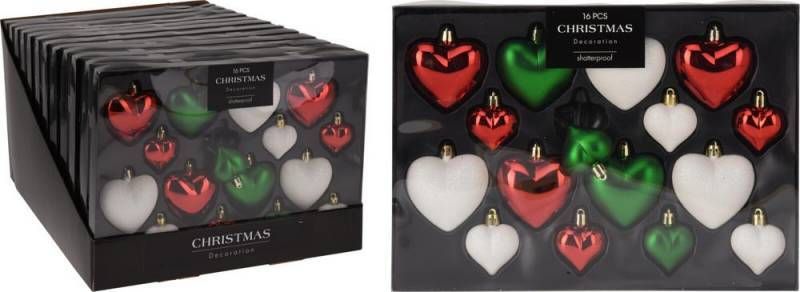 ozdoba závesná srdce, sada 16ks, materiál plast, 6,5/4,5cm, biela/červená/zelená