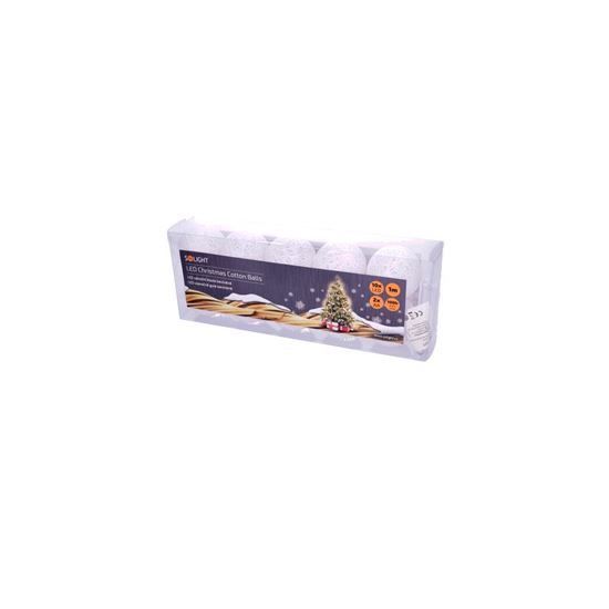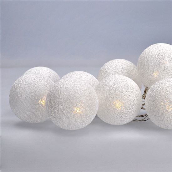 Štýlová LED reťaz s bavlnenými guľôčkami je jemnou a elegantnou dekoráciou pre váš domov. Na dĺžke 1,5 metra nájdete 10 LED diód, ktoré vyžarujú teplé biele svetlo, ideálne na vytvorenie útulnej atmosféry v spálni, obývačke alebo ako doplnok vianočných dekorácií. Biela farba guľôčok pôsobí čisto a prirodzene, zatiaľ čo jemné žltkasté svetlo dodáva priestoru útulný nádych.