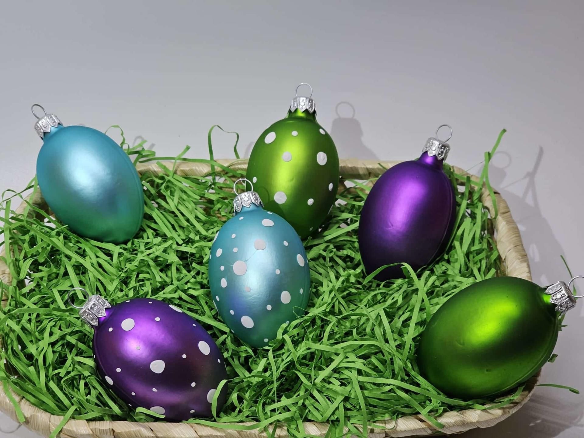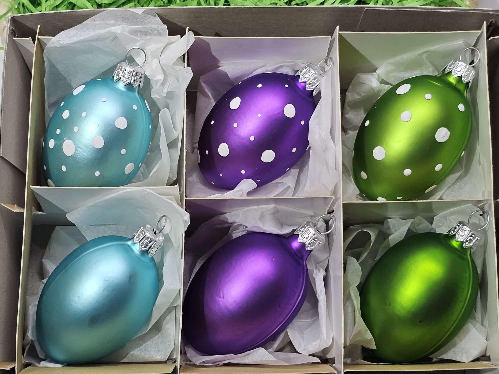 Sada 6 kusov sklenených veľkonočných vajíčok bodiek - tmavá