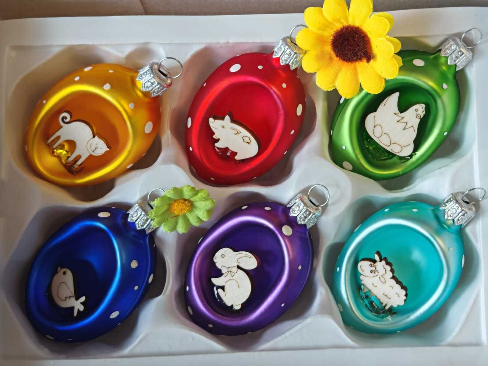 Sada 6 vajec 7,5 cm s drevenou figúrkou