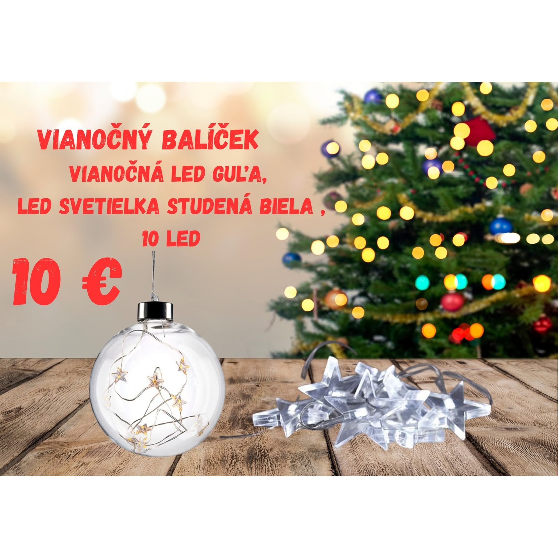 Vianočný balíček , LED vianočná guľa , LED svetielka studená biela ,