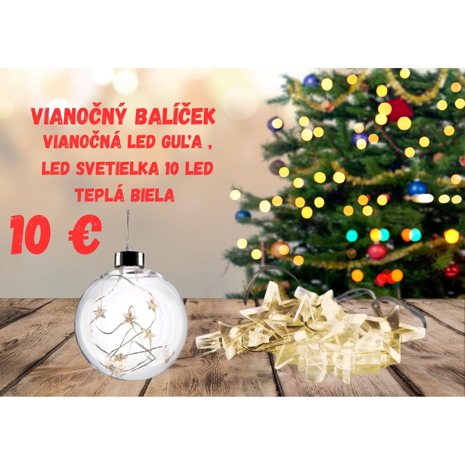 Vianočný balíček , LED vianočná guľa , LED svetielka teplá biela ,