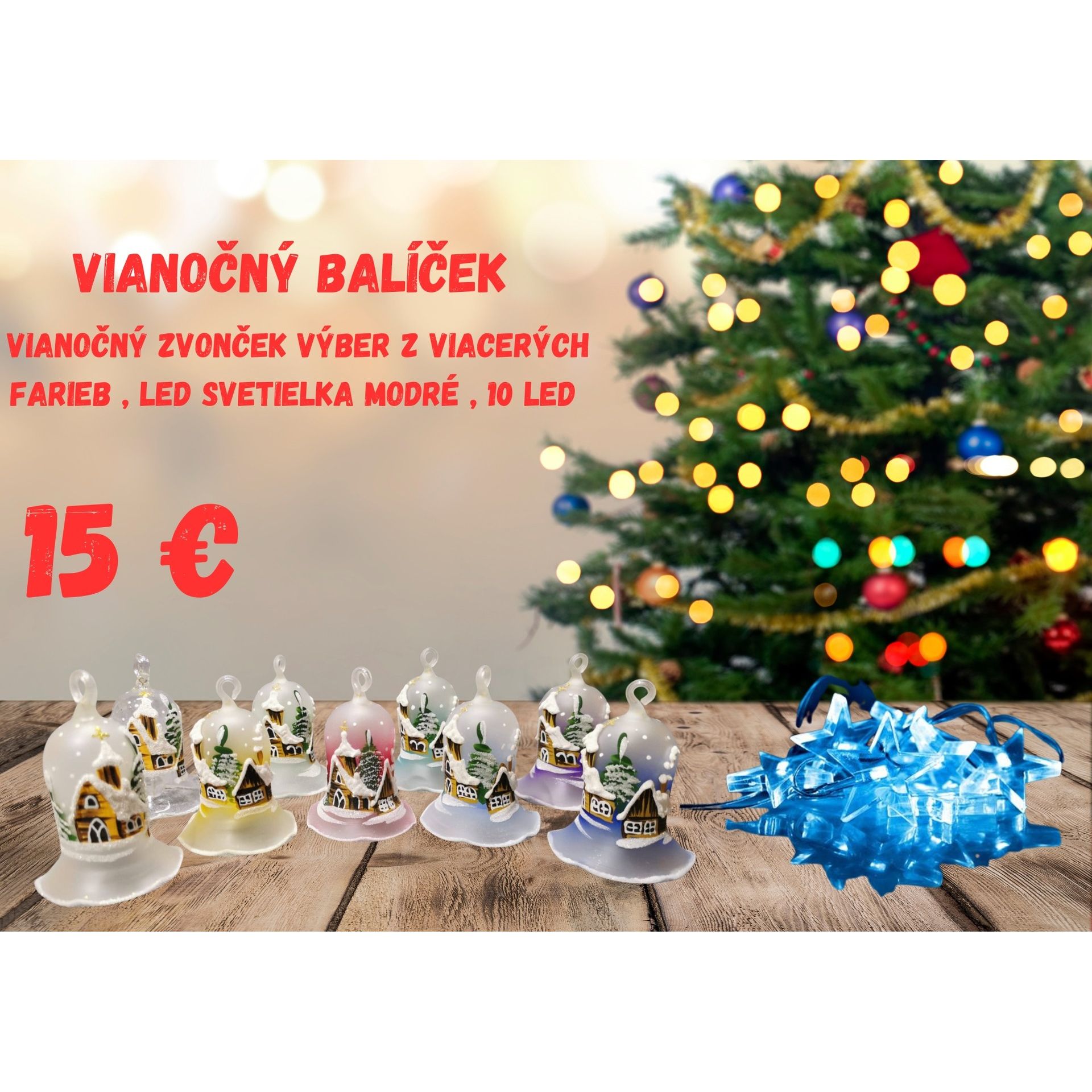 Vianočný balíček , Vianočný zvonček výber z viacerých farieb , LED svetielka modré