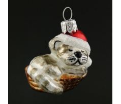 MAČKA S DARČEKOM, sklenená ozdoba, forma, farebný dekor MAČKA S DARČEKOM, sklenená ozdoba, forma, farebný dekor