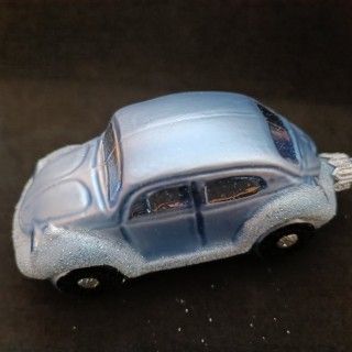 Sklenená vianočná ozdoba, forma, auto Chrobák, mat, svetlo modré, dekor, veľkosť 11x5 cm. U varianty balenia G1/1 ks je cena vrátane darčekovej krabičky. Foto ilustračné.