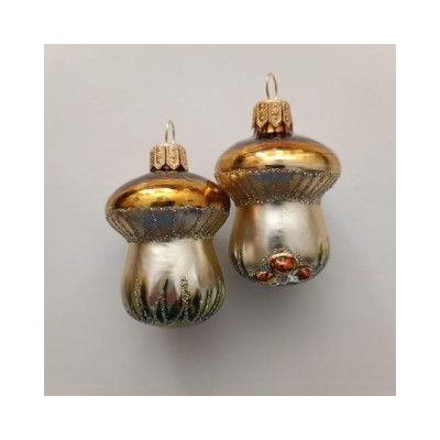 Sklenená ozdoba, forma, ručne zdobená, hríb hnedý, lesk/mat, vlkosť 5,5 cm, maľovaný dekor. Foto ilustračné.