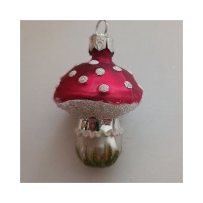 Sklenená ozdoba, forma, ručne zdobená, huba väčšia, mat/lesk, veľkosť 6 cm. Foto ilustračné, dekor a farba na figúrke sa môže líšiť.