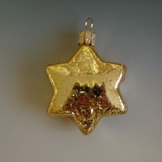 Sklenená vianočná ozdoba, forma, hviezda, zlatá, lesk, dekor, velľkosť 6 cm. Foto ilustračné. Balenie 4ks.