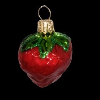 Sklenená ozdoba, forma, ručne zdobená, jahoda väčšia, veľkosť 4 cm. Foto ilustračné, dekor a farba ass, na figúrke se môže líšiť.