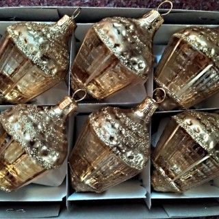 Sklenená vianočná ozdoba, forma, lucerna ovál, čajové sklo, zlatá, priehľadná, mat, dekor, veľkosť 7x4,5 cm. Foto ilustračné.Balenie 6ks.