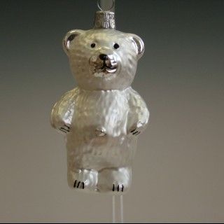 Sklenená vianočná ozdoba, forma, medveď , biely, mat, dekor, veľkosť 8 cm. Foto ilustračné.