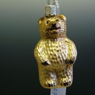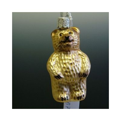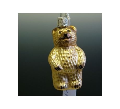 Sklenená vianočná ozdoba, forma, medveď malý , mat, zlatohnedý dekor. Foto ilustračné.