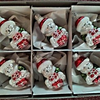 Sklenená vianočná ozdoba, forma, medveď s darčekom malý, mat, farba biela/zelená/červená, dekor. Foto ilustračné