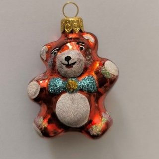 MEDVEDÍK, sklenená vianočná ozdoba, ručne maľovaný dekor.