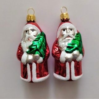 Sklenená vianočná ozdoba, forma, Mikuláš so zeleným stromčekom väčší, lesk/mat, farebný dekor. Foto ilustračné.