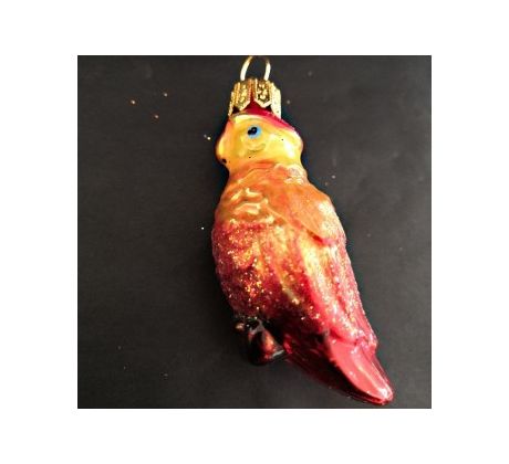 Sklenená ozdoba, forma, ručne zdobená, papagáj, mat/lesk, veľkosť 6,5 cm. Foto ilustračné, viac variant, dekor a farba na figúrke sa môže líšiť.