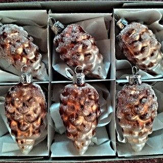 Sklenená vianočná ozdoba, forma, šiška, hnedá, mat, dekor, veľkosť 8 cm. Foto ilustračné. Balenie 6ks.
