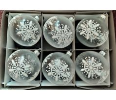 GUĽA, sklenená vianočná ozdoba, priehľadná, biela, dekor
