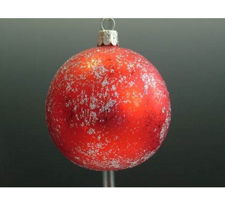 Sklenená vianočná ozdoba v tvare gule, hladká, červená, mat, hubkovaná lakom, strieborná diamantina, viac veľkostí. Foto ilustračné