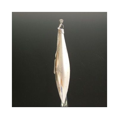 Sklenená vianočná ozdoba v tvare rakety, hladká, biela, mat, strieborný dekor hviezdy, veľkosť 14x3 cm. Foto ilustračné. Balenie 5ks.