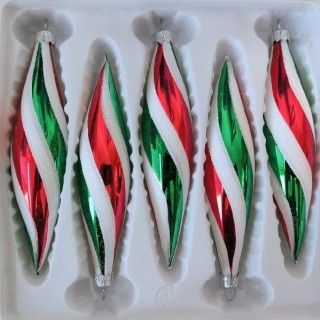 Sklenená vianočná ozdoba v tvare rakety, hladká, farba ass (červená + zelená), lesk, retro dekor, veľkosť 14x3 cm, foto ilustračné. Balenie 5ks.
