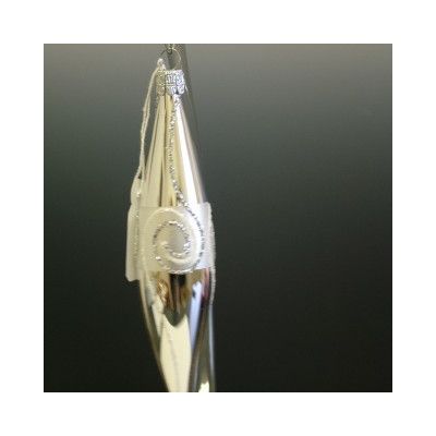 Sklenená vianočná ozdoba v tvare rakety, hladká, strieborná, stred s bielym matom, plast. dekor, veľkosť 14x3 cm, foto ilustračné. Balenie 5ks.