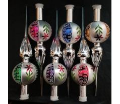 ŠPIC 1-GUĽA, sklenená retro ozdoba, strieborná, lesk, farebný dekor