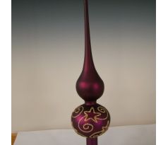 ŠPIC HVIEZDA, sklenená, forma, červená, lesk, strieborný dekor, šaton
