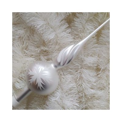 Sklenená vianočná ozdoba v tvare špicu, 1-guľa, hladká, krútená vežička, biela, mat, biely dekor, veľkosť gule 7 cm, foto ilustračné.