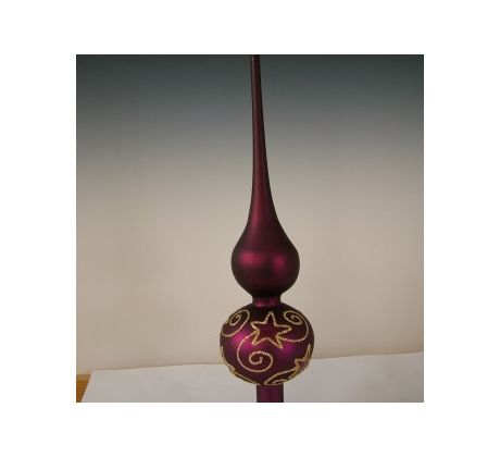 Sklenená vianočná ozdoba v tvare špicu, 1-guľa, hladká, tmavo fialová, mat, dekor hviezdy, veľkosť gule 6 cm, foto ilustračné