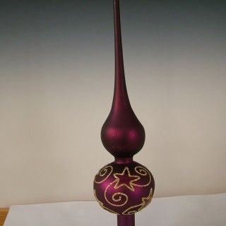 Sklenená vianočná ozdoba v tvare špicu, 1-guľa, hladká, tmavo fialová, mat, dekor hviezdy, veľkosť gule 6 cm, foto ilustračné