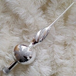 Sklenená vianočná ozdoba v tvare špicu, 1-guľa, hladká, strieborná, krútená vežička, lesk, strieborný dekor, veľkosť gule 7 cm, foto ilustračné.
