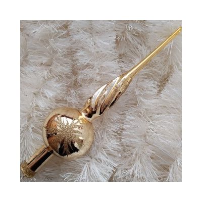 Sklenená vianočná ozdoba v tvare špicu, 1-guľa, hladká, krútená vežička, zlatá, lesk, zlatý dekor, veľkosť gule 7 cm foto ilustračné.
