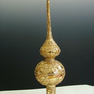 Sklenená vianočná ozdoba v tvare špicu, 1-guľa, hladká, zlatá, lesk, plast. dekor, veľkosť gule 7 cm, foto ilustračné.