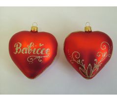 SRDCE VEĽKÉ, sklenená ozdoba, čire, biely dekor chalúpka