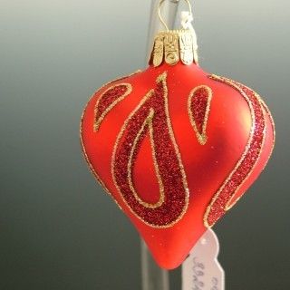 Sklennená vianočná ozdoba v tvare srdca, forma, hladké, červené, mat, plast. dekor, veľkosť 5,4x5,3 cm, foto ilustračné