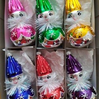Sklenená vianočná ozdoba, voľne fúkaný tvar, panenka/panáčik s čapicou, HVIEZDIČKY, lesk/mat, maľovaný farebný dekor, veľkosť 14 cm. Foto ilustračné.Balenie 6 ks.
