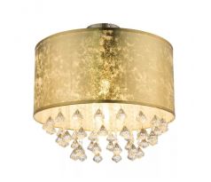 Stropné svietidlo, kov nikel matný, textil zlatý, akrylové kryštále priehľadné, Ø400, V:380, bez žiarovky 1xE27, max. 60W 230V.