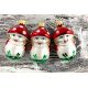 Sklenené figúrky v podobe snehuliačikov v červeno-bielom prevedení.